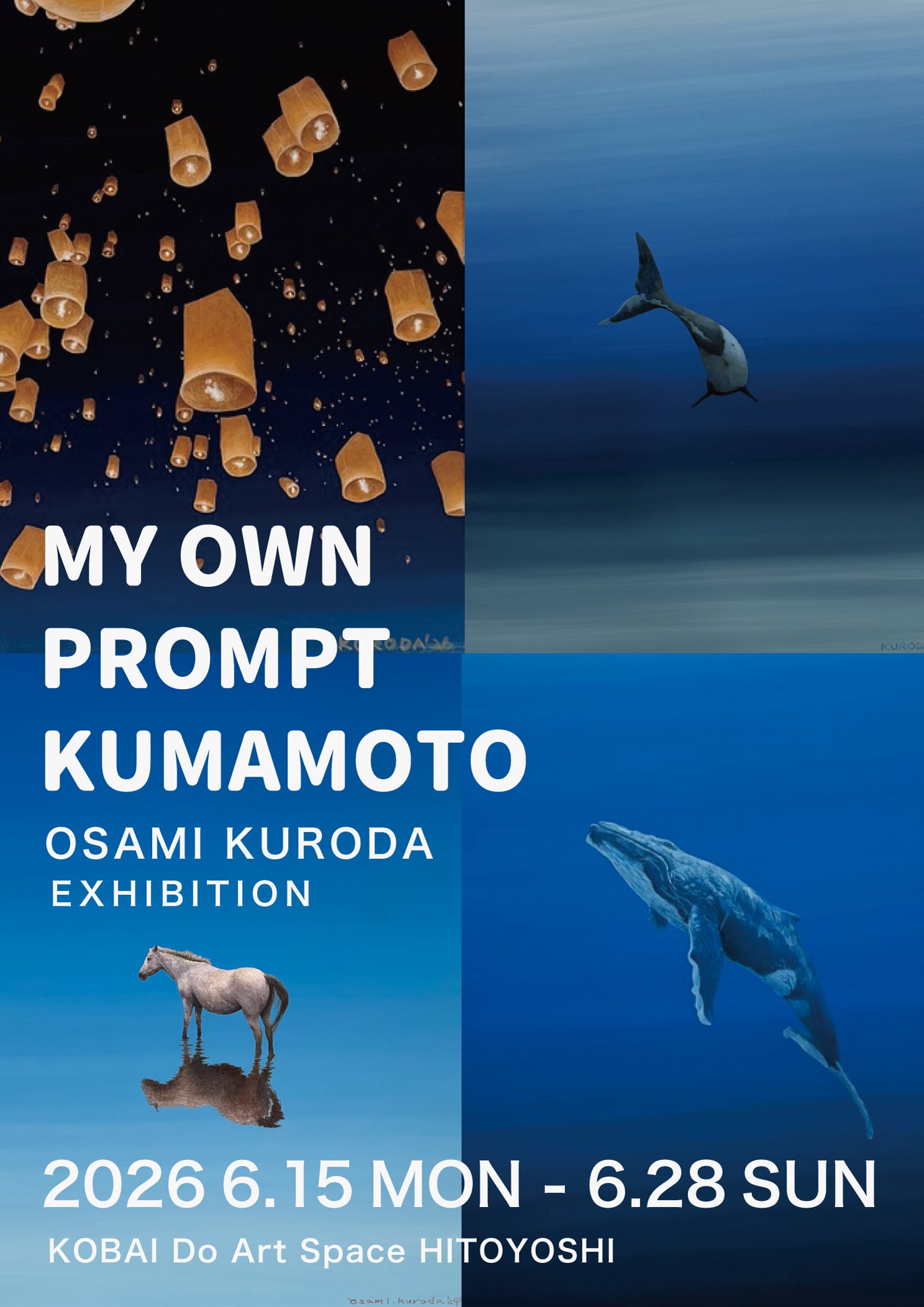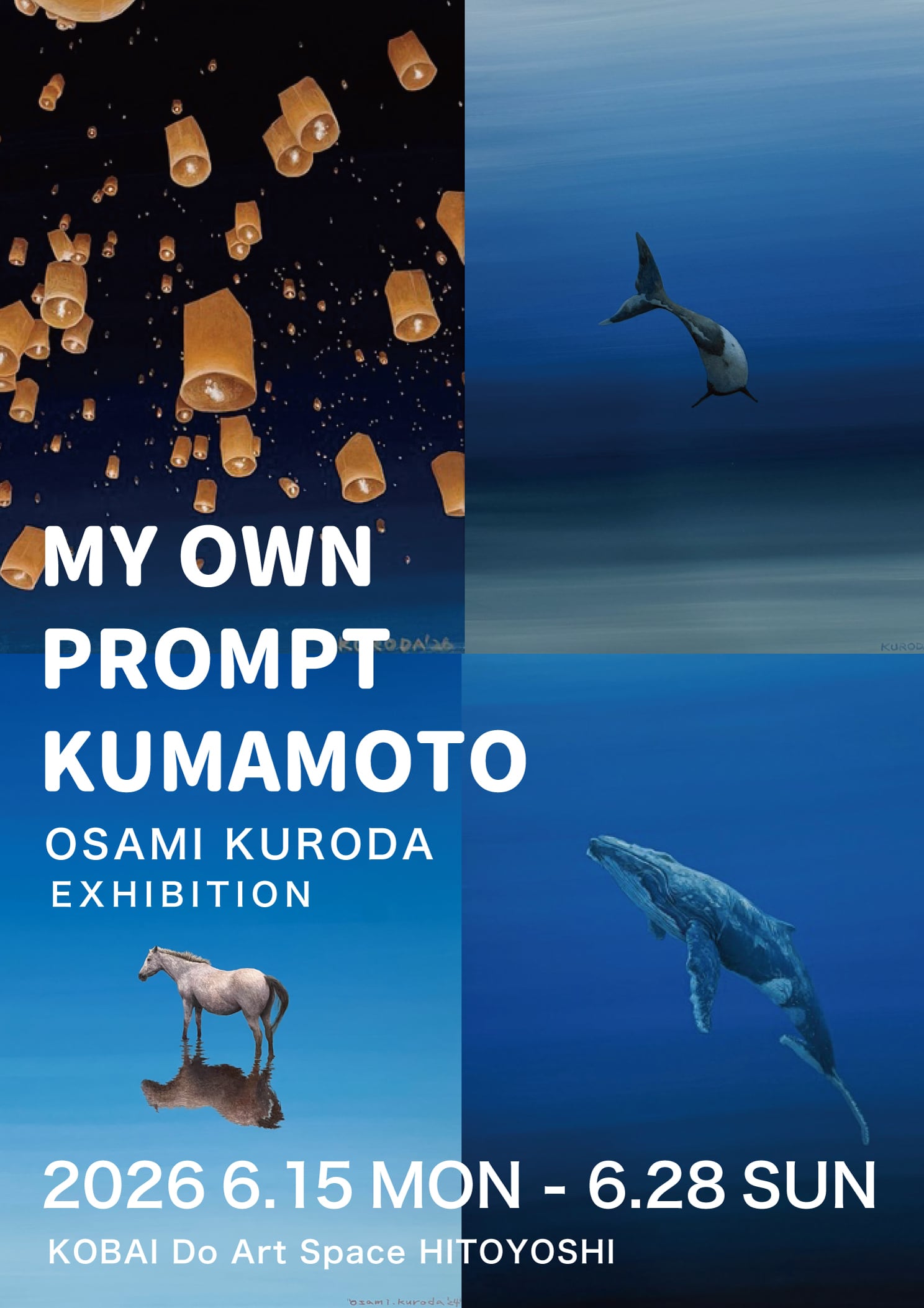 子どもの頃から好きな青色を使ってみたくて、この絵を描き始めました。水面の中央に凛と佇む白い馬を描きながら、「自分はこの絵で何を表現したいのか」と、作品との対話が始まりました。その問いは完成後もしばらく続き、やがて辿り着いた答えが「孤高」でした。澄み切った水を、人間の心に重ねています。心が穏やかで澄んでいれば、物事を正しく判断し、行動できます。しかし、思いがけない出来事や人間関係の波によって、心の水が濁ることもあります。濁ったまま動くのではなく、再び澄むのを待つこと。そのためには時間や忍耐が必要です。そして、自分から荒波を立てようとせずに、気高く凛とした姿勢でいること。そういう想いから、この作品を「孤高」と名付けました。